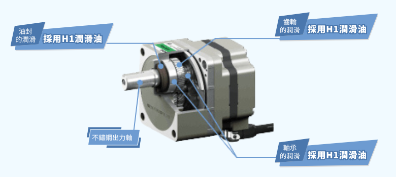 採用對應食品機械用H1潤滑油規格之無刷馬達減速機(GFV減速機30 W~120W),可有效強化設備對食品安全規範之適用性。