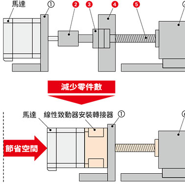- 因透過聯軸器將馬達連接至螺桿機構,故需花時間調整組裝及安裝精度等。